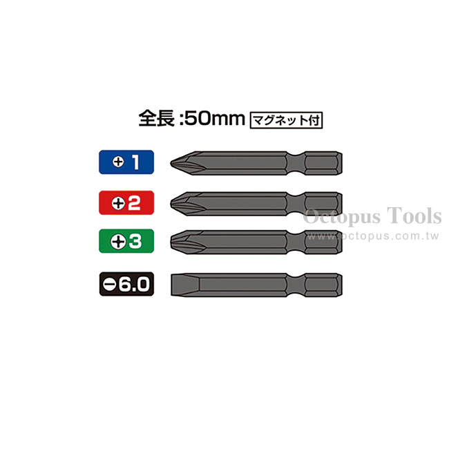 起子頭規格: 十字#1, #2, #3;一字6.0mm;十字#2(本體上)。