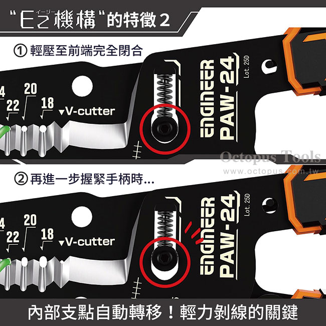 剝線能力:AWG 30, 28, 26, 24, 22, 20, 18