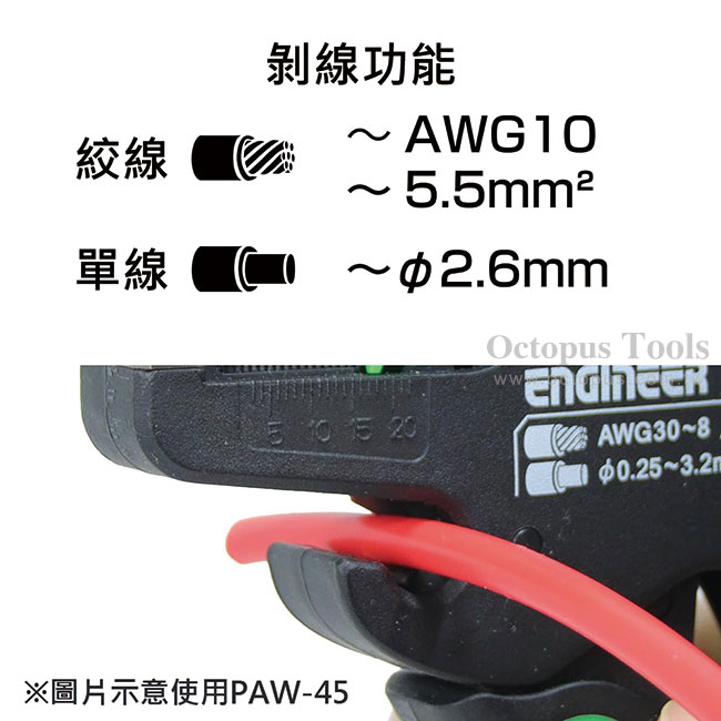 剝線能力(絞線):0.05 ~ 5.5mm2(AWG30 ~ 10)