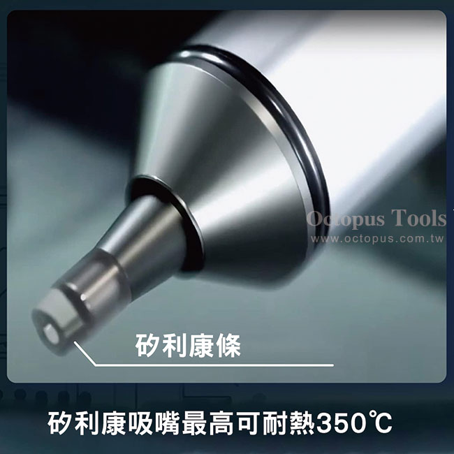 ◆ 具彈力和耐熱的矽力康吸嘴材質和一般的吸錫器不同,可盡量減少與被吸物表面的距離,因此吸力更大。