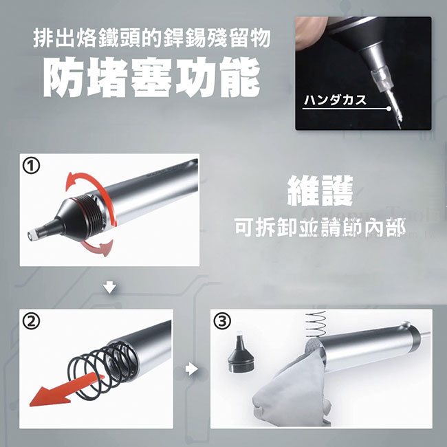 ◆ 超強吸力,可讓熔化的錫點輕易地被吸起。
